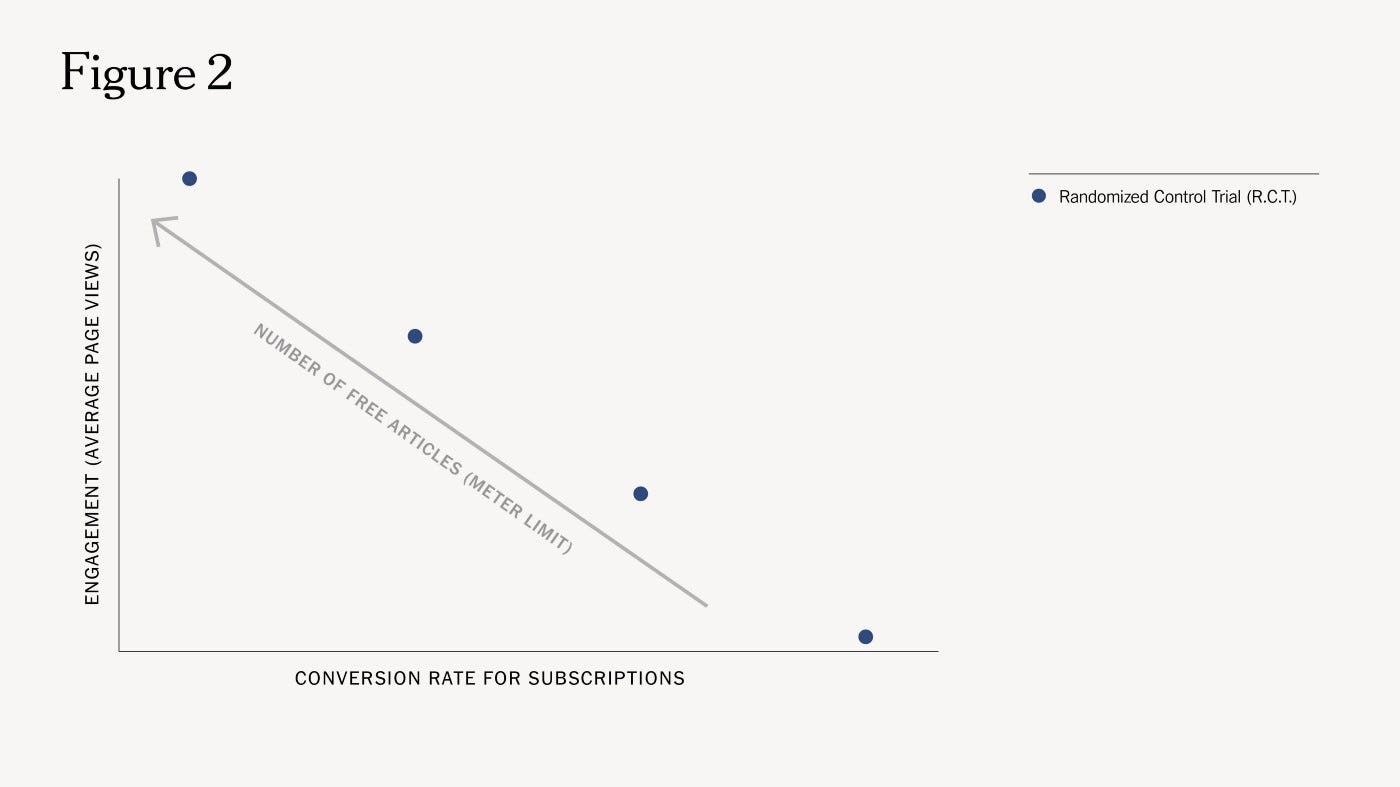 訪問者が何らかの理由でウェブサイトに来ても、無料で読める記事がなければその人がコンバートする可能性はほぼゼロでしょう。かといって、月にある程度の数の記事を無料で読むことができれば、それはそれでコンバートすることもないでしょう。